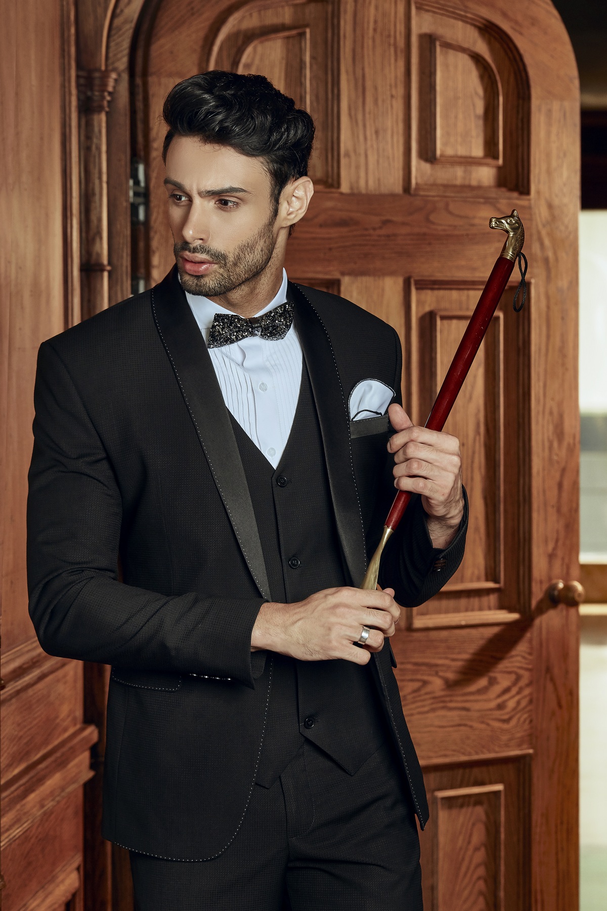 VEST 3 MẢNH TUXEDO ĐEN CAO CẤP